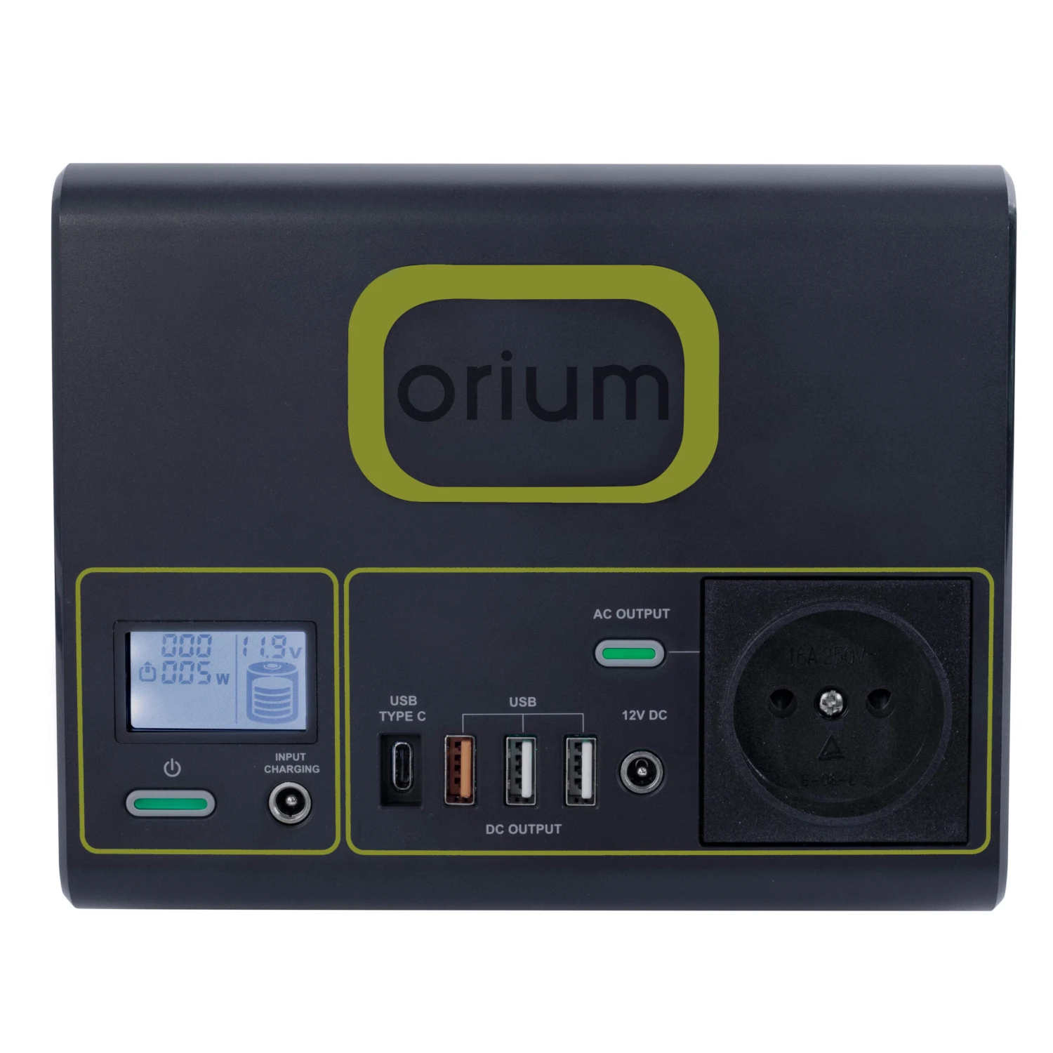 -Outputs: DC socket, Cigarette lighter socket (adapter), USB, USB Type C, AC 230V