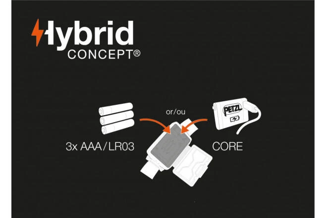 - HYBRID CONCEPT design: TIKKAยฎ CORE comes with the CORE rechargeable battery and also works with three AAA/LR03 batteries (not included); it automatically detects the energy source and adjusts lighting performance