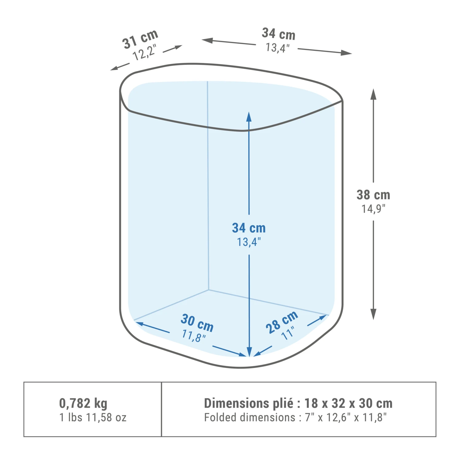 Internal dimensions: Height : 34 cm | Length: 30 cm | Width: 28 cm