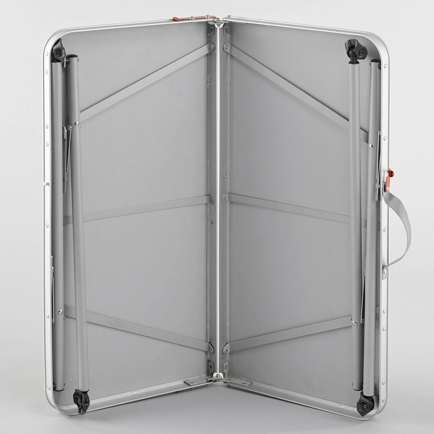Our camper-designers designed this comfortable folding dining table for up to 4 people at a campsite.Our motivation? To offer you a stable and strong camping table at which 4 people can eat comfortably. A square shape for more sociable meals!