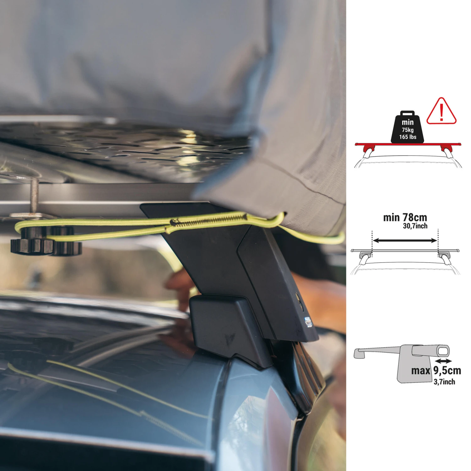 Don’t worry, once installed and stationary, your roof bars will be able to support the roof tent, as well as the weight of the people inside (200 kg in total).