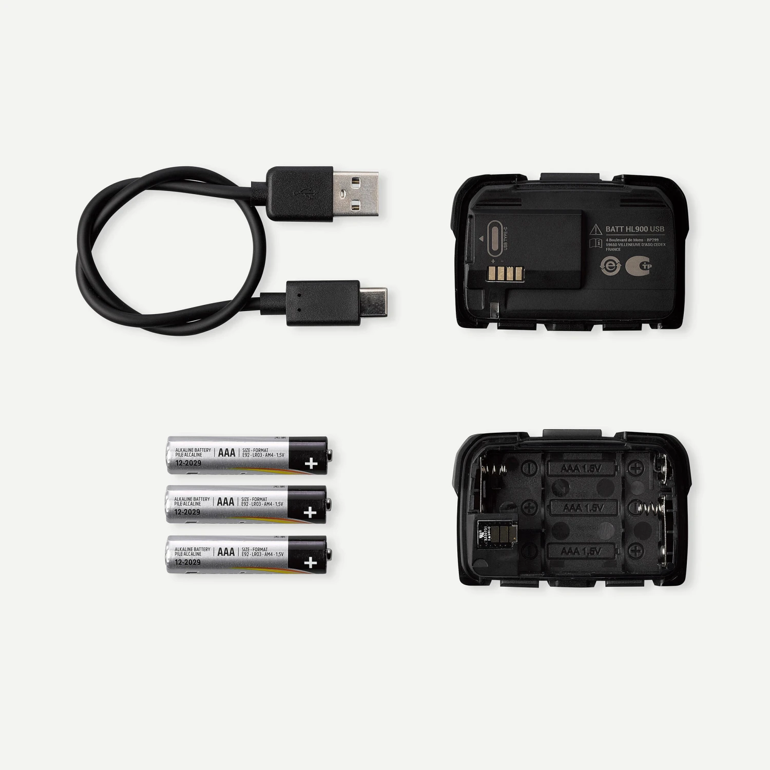 Our HL900 headlamp has been improved to take you from a gentle ramble to the highest peaks and on all your adventures.Want to explore the world? The HL900 USB V3 has increased its power for seeing even further! Robust and waterproof, it has a retractable USB battery but can also work with batteries