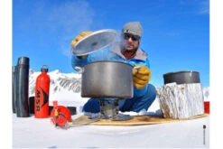 Position the wind barrier around the camp stove and check that there is sufficient space to set up your cooking area.